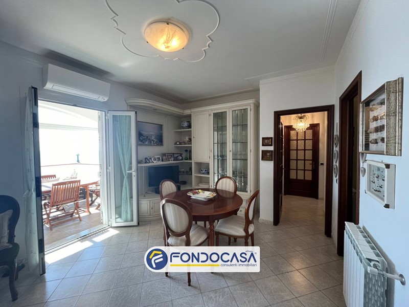 Al piano primo troviamo quadrilocale dove il mare è protagonista assoluto. L'ingresso conduce a un luminoso soggiorno che si apre direttamente su un porticato e una terrazza panoramica: qui la vista sul mare si distende senza ostacoli, regalando tramonti indimenticabili e un panorama che spazia dall'alba al crepuscolo. La cucina abitabile è perfetta per chi ama cucinare, mentre un pratico disimpegno divide la zona giorno dalla zona notte. Due camere da letto, di cui una con balcone affacciato sul mare per risvegli da cartolina, e due bagni finestrati completano questo piano.