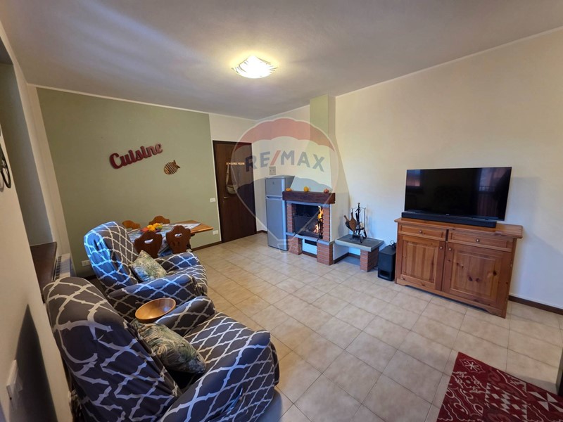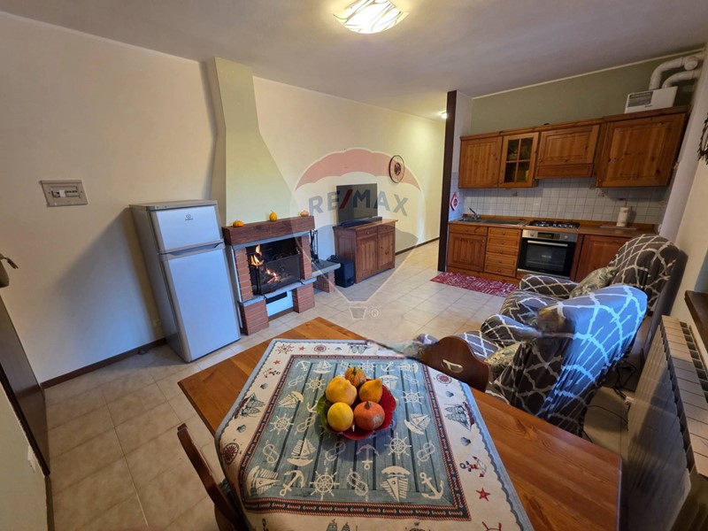 Composto da una comoda zona living con un confortevole camino ed una cucina a vista, un disimpegno che anticipa il bagno con vasca e la camera matrimoniale.