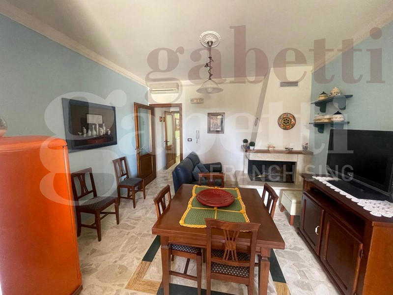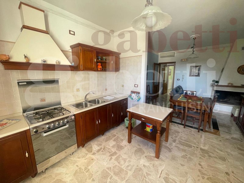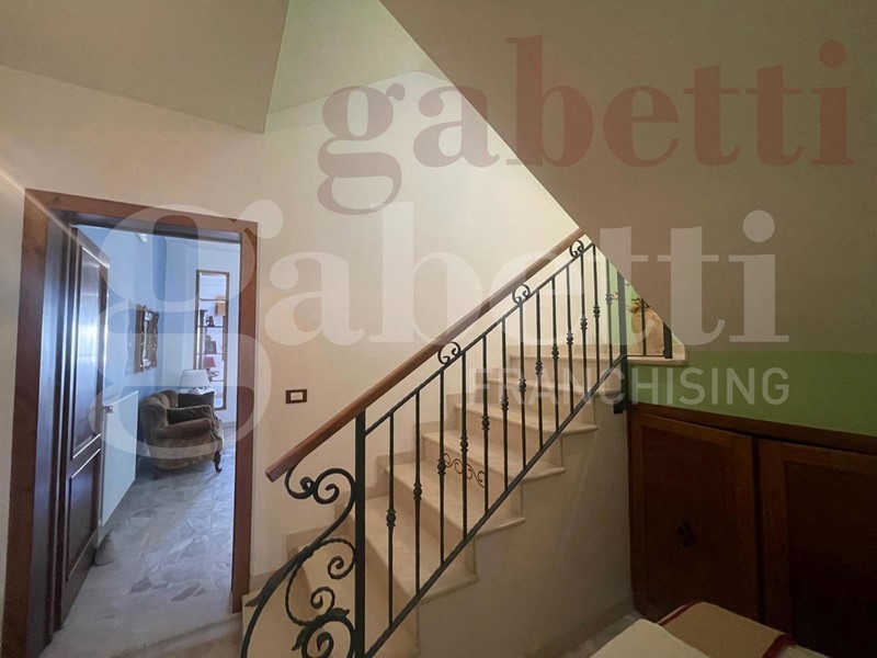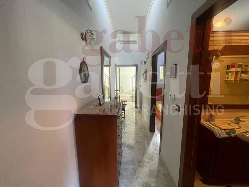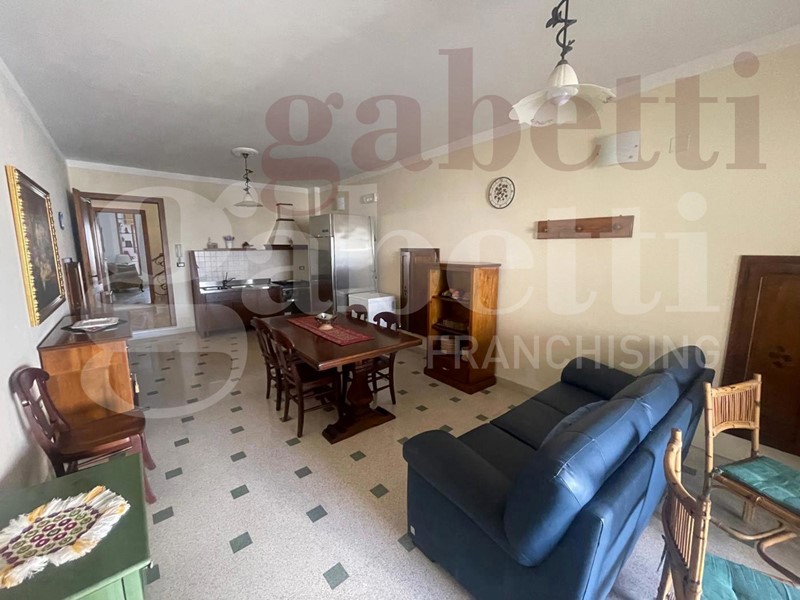 Doppio ingresso su due strade parallele e composta da: al piano terra salone doppio comunicante con un ampia sala da pranzo e cucina a vista più un piccolo bagno; al piano primo tinello con camino ad angolo, angolo cottura con affaccio su balcone, camera matrimoniale con balcone, cameretta, bagno padronale ed una comoda zona lavanderia.