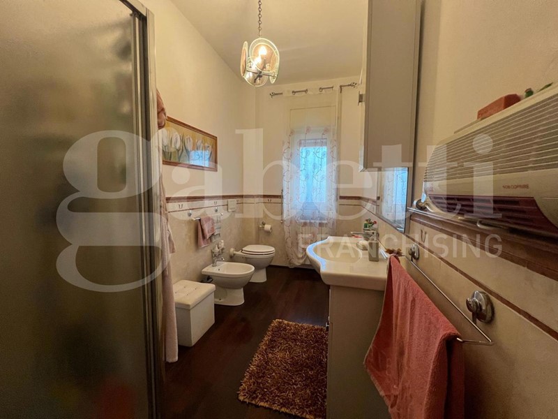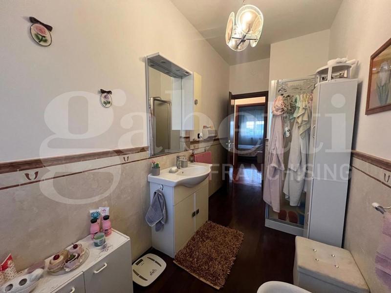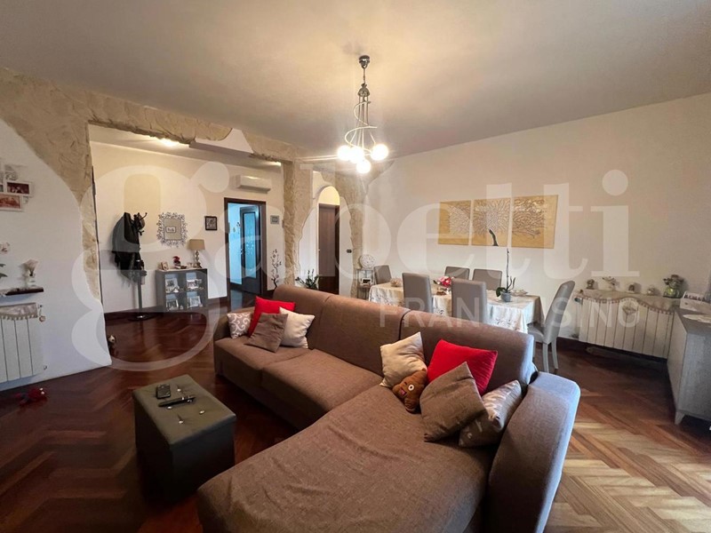 la casa ha ingresso su un grande e signorile salone aperto e con balcone esclusivo, cucina abitabile con balcone esclusivo e doppio servizio (con wc, pilozza e angolo lavatrice), disimpegno, bagno con doccia e finestra, camera da letto matrimoniale con finestra, camera da letto con finestra, comodo ripostiglio.