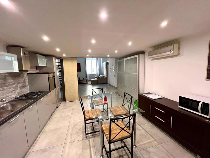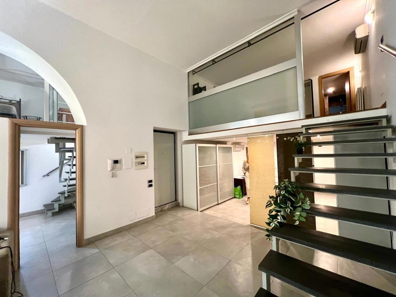 L'immobile, presenta una quadratura di circa 129 mq, si sviluppa su due livelli grazie a due soppalchi che sfruttano l'altezza interna. L'ingresso si apre in una zona living con ampia cucina a vista, bagno di servizio, una lavanderia e un comodo ripostiglio. La zona notte in soppalco è composta da due camere da letto, una delle quali con bagno privato in camera completo di vasca, doccia e doppio lavabo.