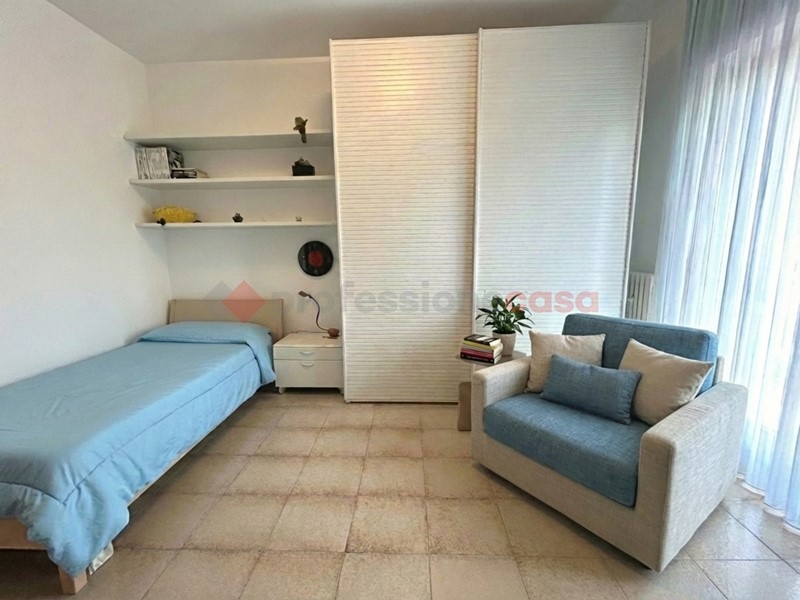 La zona notte comprende una camera matrimoniale e una cameretta, entrambe servite dal bagno principale. Gli ambienti si affacciano su un balcone spazioso sul retro, dal quale si accede ad un secondo ripostiglio.