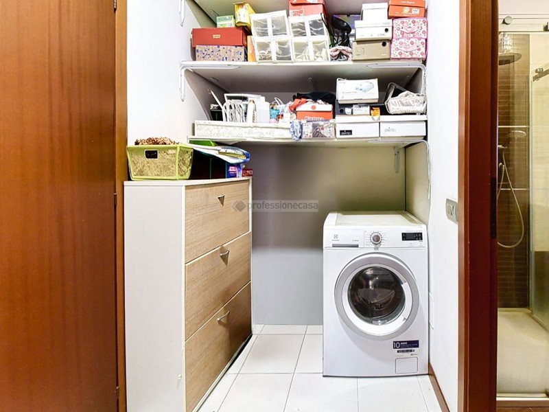 Zona notte con bagno, disimpegno con mobile ripostiglio / lavatrice, camera matrimoniale
