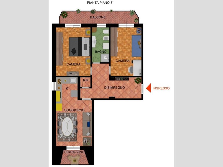 Posto al terzo ed ultimo piano, senza ascensore, proponiamo in affitto ottimo trilocale ristrutturato.