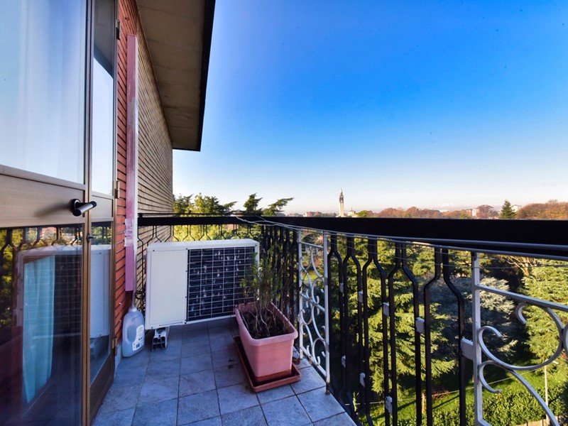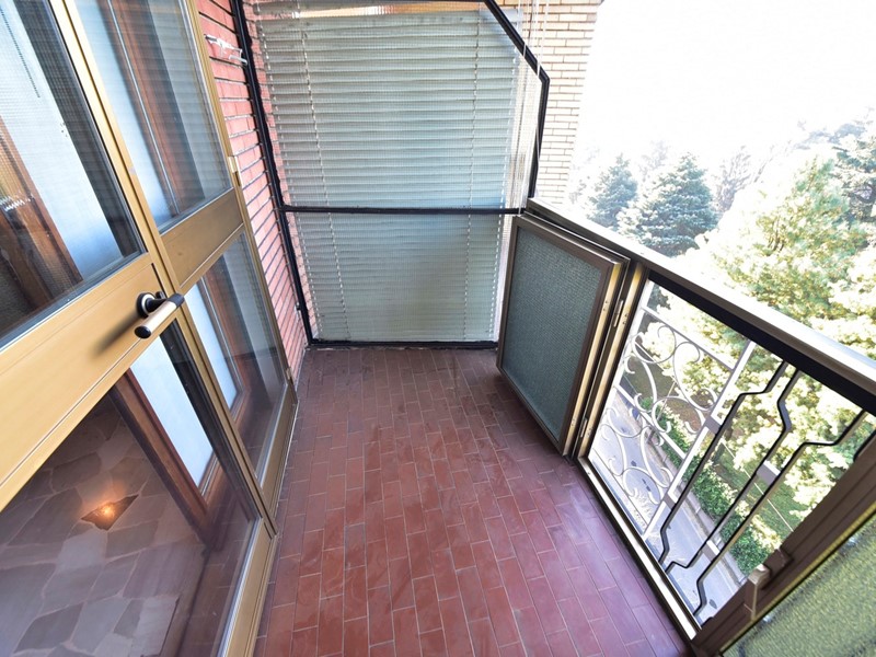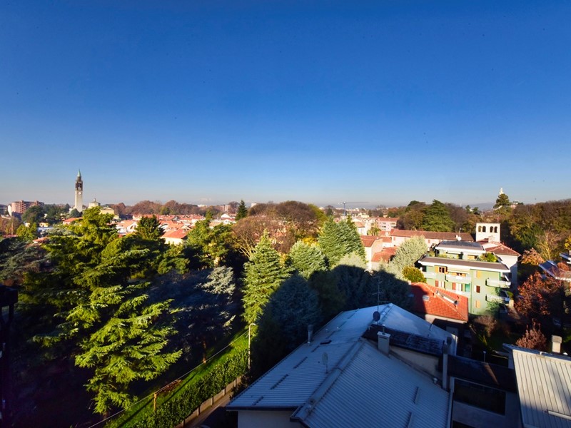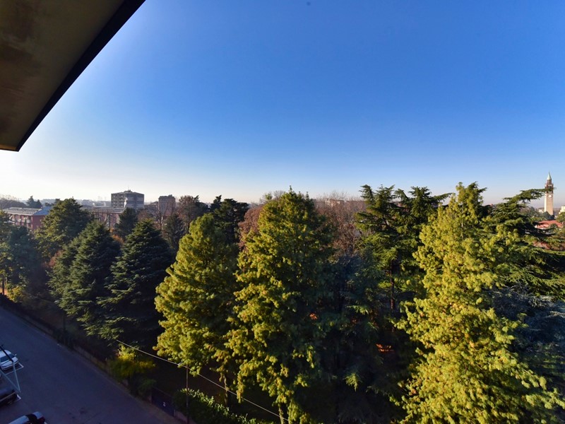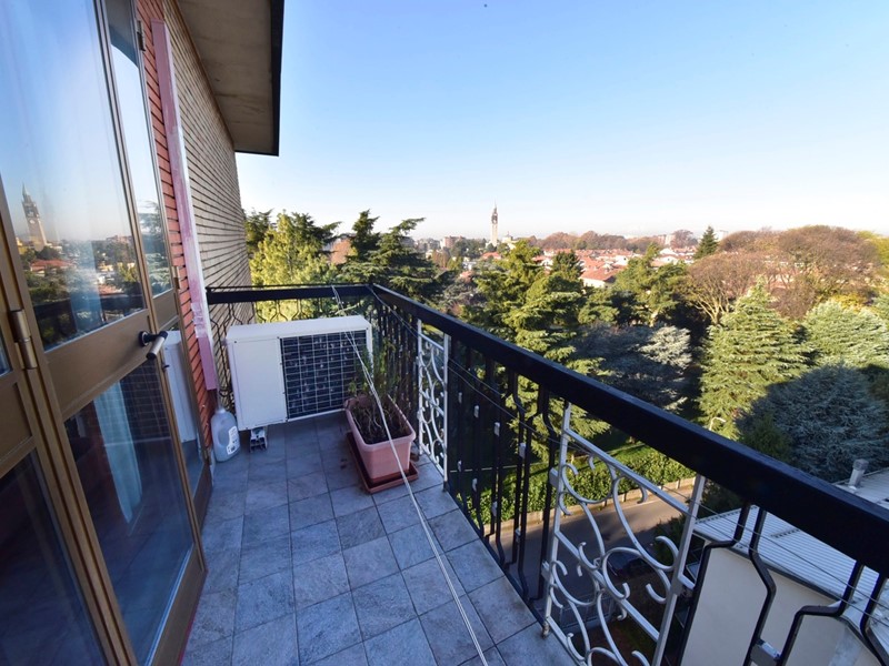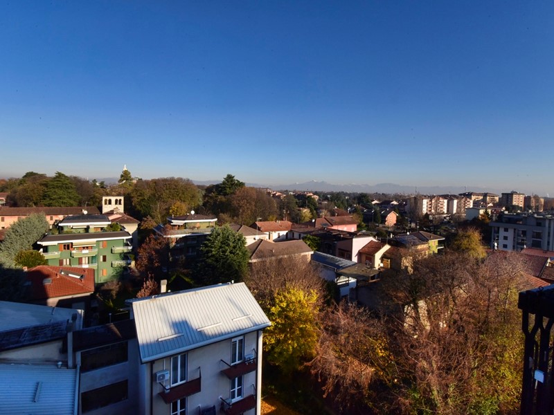 Tramite l'ascensore si accede all'utimo piano ove troviamo l'abitazione così disposta: ingresso con affaccio diretto sull'ampio soggiorno munito di comodo balcone lato sud con vista panoramica sulla città di Milano; cucina abitabile anch'essa con meraviglioso affaccio sulla catena montuosa lato ovest, n. 2 camere entrambe matrimoniali e bagno finestrato.