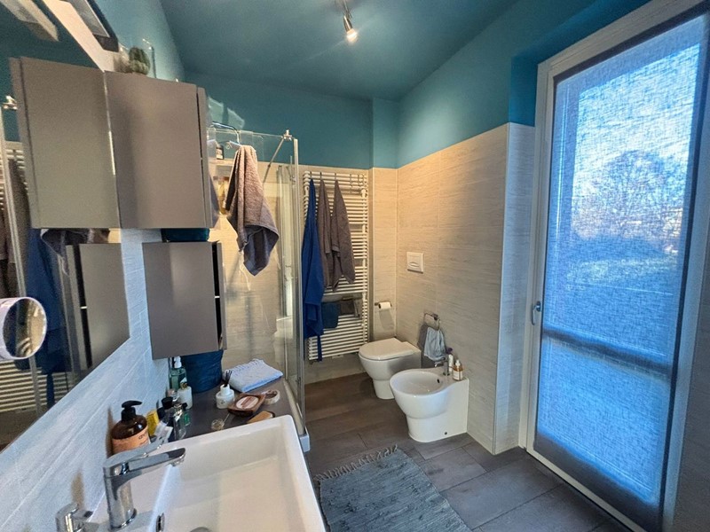 Dotato di riscaldamento a pavimento, pompa di calore e infissi di ultima generazione, l'appartamento garantisce comfort e risparmio energetico.