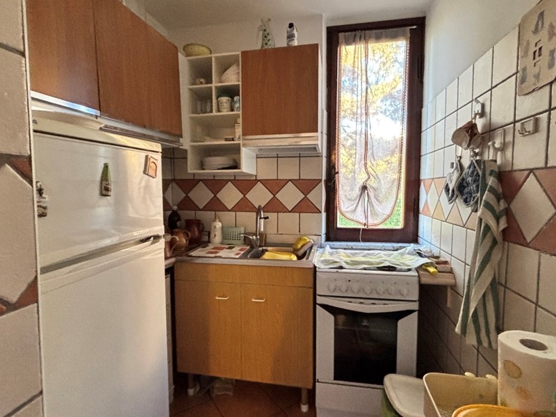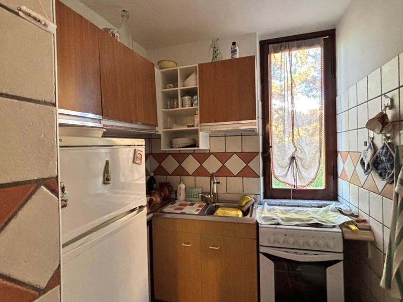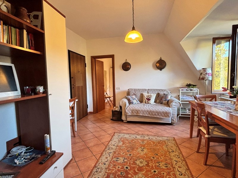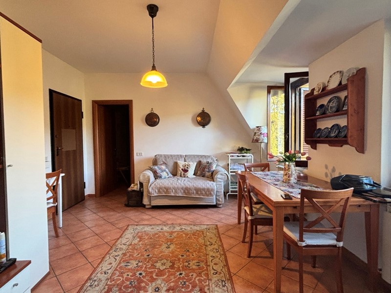 L'ingresso si apre su un soggiorno luminoso con cucinotto separato e funzionale, mentre la zona notte ospita una camera matrimoniale con bagno privato.