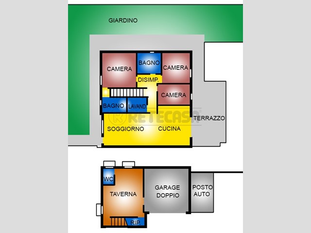 -Piano interrato: Collegamento diretto e interno dall' appartamento alla spaziosa taverna con bagno privato, garage doppio e posto auto esclusivo.
