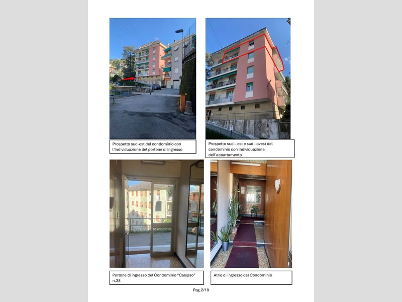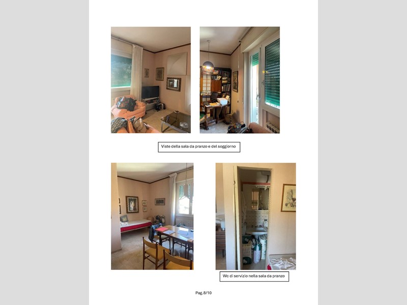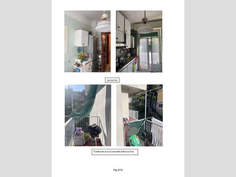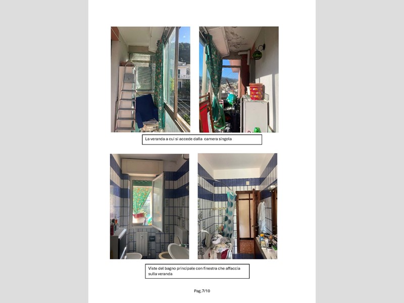 Appartamento sito in Rapallo (GE) - Via Privata della Fontana 38, interno 8, posto al quarto piano di un edificio condominiale di sei piani, composto da ingresso, cucina, doppio soggiorno, disimpegno zona notte, camera da letto matrimoniale, camera da letto singola, bagno e piccolo w.c, con due piccoli balconi a servizio della cucina e del soggiorno ed un terzo balcone trasformato in veranda con serramenti vetrati. Come dotazione accessoria vi è una piccola cantina al piano terra. Metri quadri 113,00Lo stato conservativo dell'appartamento è mediocre con finiture dell'epoca di costruzione (anni 60); gli infissi sono stati sostituiti in tempi relativamente recenti, mentre bagni e cucina sono da rifare; in alcuni vani è stata applicata tappezzeria e le tinteggiature di pareti e soffitti in molti punti sfogliano; le porte interne sono in legno, con pannelli vetrati.L'impianto di riscaldamento è centralizzato con valvole contabilizzatrici su ogni radiatore in ghisa smaltata. L'acqua calda sanitaria è prodotta tramite uno scalda-acqua istantaneo a gas installato in cucina. E’ presente impianto di condizionamento composto da unità esterna sul balcone del soggiorno e da una sola unità interna posta in corridoio. L'impianto elettrico non è a norma e non è presente interruttore magnetotermico differenziale.Per quanto riguarda le parti condominiali, l'androne di ingresso e il vano scala hanno le problematiche dovute all'età delle finiture, mentre la facciata si presenta invece in buono stato, probabilmente rifatta in tempi relativamente recenti.La costruzione risulta antecedente al 01/09/1967. Non sono presenti vincoli artistici, storici o alberghieri. Non sono presenti diritti demaniali o usi civici. L'edificio è stato costruito in forza di Autorizzazione Edilizia n.793 del 20/06/1959. In data 13/05/1993 è stata rilasciata concessione edilizia in sanatoria n.3866 ai sensi della L.47/86 (primo condono edilizio) per modifiche interne all'alloggio e per la realizzazione della veranda di chiusura del balcone sul lato Sud-Est (costituente nuovo volume edilizio). In questo titolo edilizio è specificato che le opere erano soggette al rilascio del decreto di abitabilità da richiedersi a cura dell'interessato, ma tale richiesta non è mai stata fatta e all'oggi l'immobile è da considerarsi privo di abitabilità/agibilità.Lo stato dei luoghi è conforme agli elaborati grafici della pratica di condono edilizio sopra riportata.Si rileva che il w.c. condonato non ha antibagno verso il soggiorno, non rispettando le norme igienico-sanitarie per cui per ottenere l'agibilità si dovrebbe realizzare tale locale filtro o eliminare il piccolo servizio igienico.