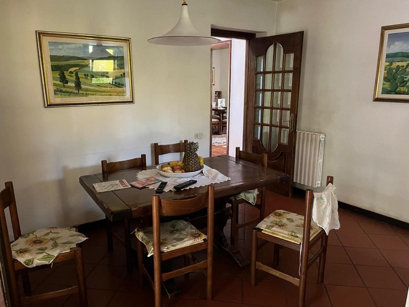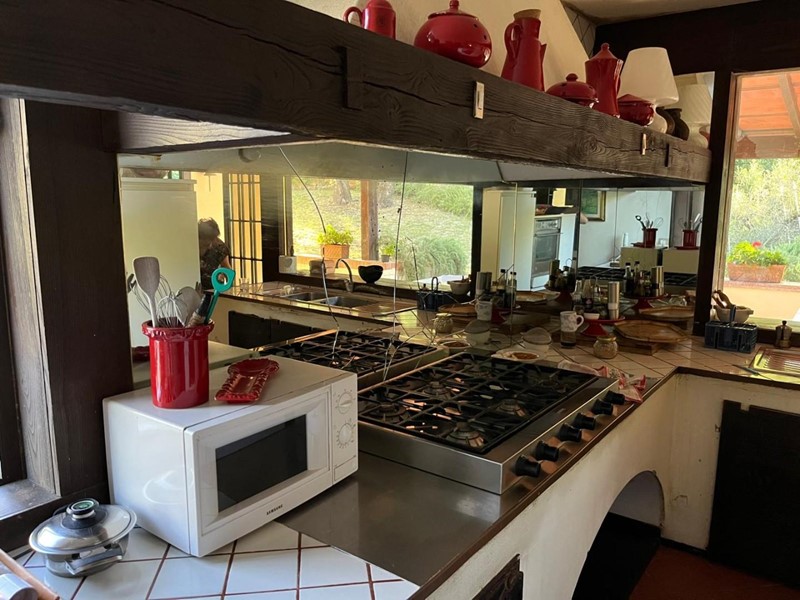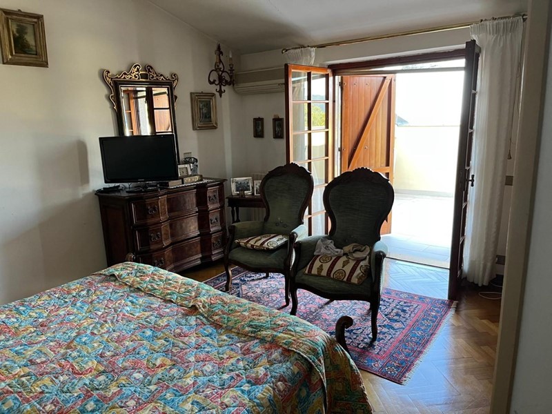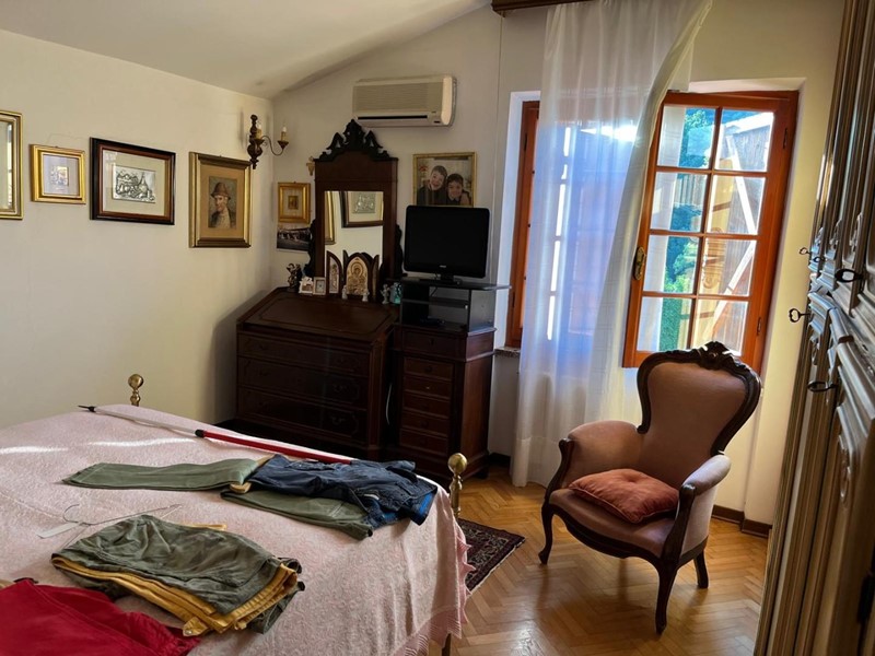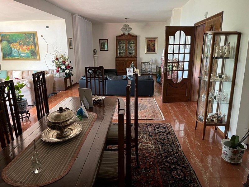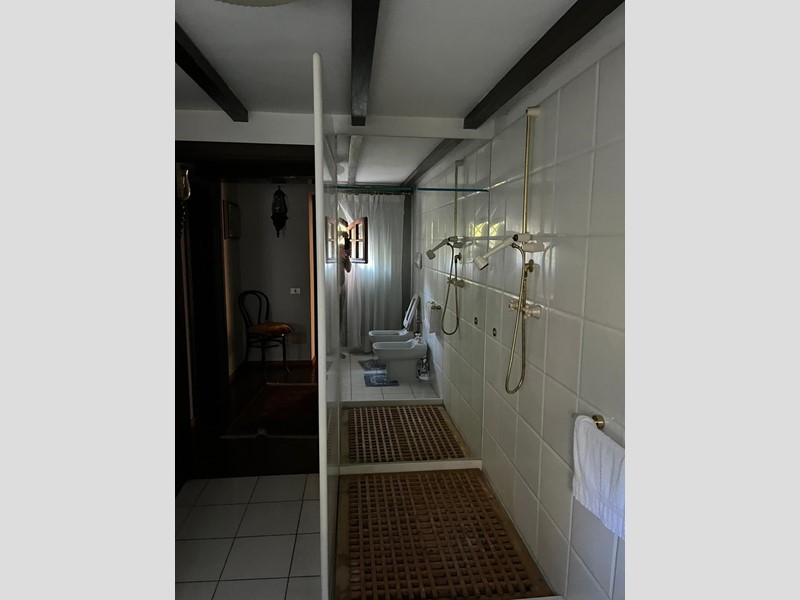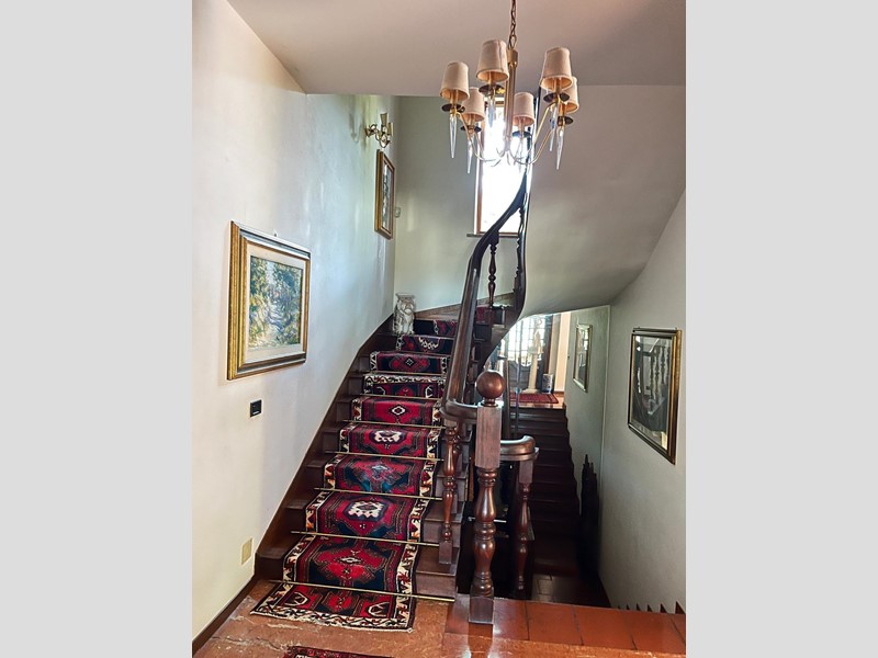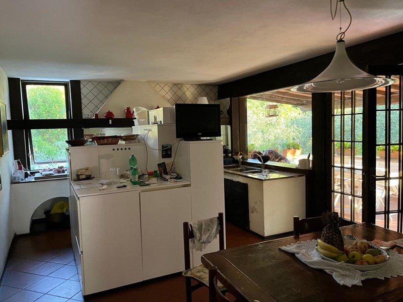 Al piano padronale si sviluppa l’ampia cucina valorizzata dalla presenza di un grande camino e di un forno a legna. Proseguendo si accede al salone triplo, correlato da un comodo bagno per ospiti e da un ripostiglio. Il salone affaccia su un portico di generose dimensioni da cui godere di una splendida vista mare.