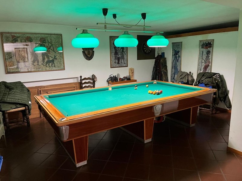 Al piano seminterrato troviamo un accogliente area ricreativa con locale dedicato al biliardo, una camera per gli ospiti, uno studio, ed un bagno.