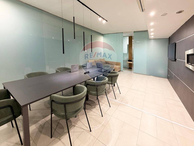 Gli ambienti, moderni e funzionali, comprendono reception, sale riunioni, postazioni operative, uffici direzionali e doppi servizi. Le ampie vetrate satinanti, lilluminazione a LED e il design contemporaneo creano uno spazio di lavoro elegante e pronto alluso.