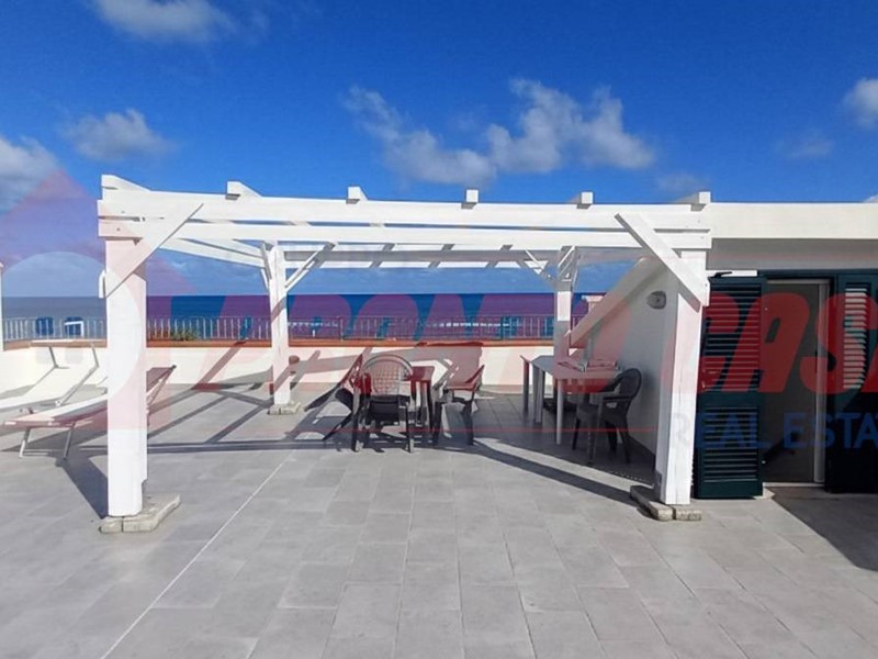 Immobiliare PRONTO CASA propone in **VENDITA** in località San Menaio, comune di Vico del Gargano, sul Lungomare Andrea Pazienza, direttamente affacciata sul mare, soluzione abitativa di circa 90mq (utili), disposta su un unico livello, sita al Piano PRIMO con Favoloso Terrazzo Panoramico vista mare ad uso esclusivo.