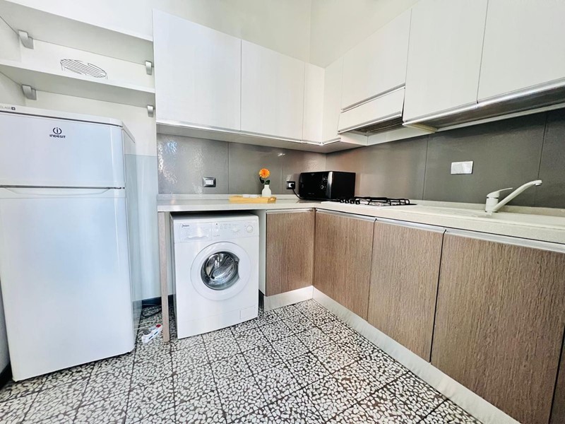 Questo appartamento, in buono stato, si trova al primo piano di una palazzina ben curata ed offre un'accogliente zona giorno con ingresso diretto. Con due balconi, uno dei quali serve anche la cucina, potrai goderti momenti di relax all'aperto con un delizioso scorcio di vista mare.