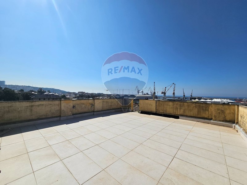 L'appartamento nello specifico è un quadrilocale, con zona giorno nel salone con angolo cottura, tre camere da letto due bagni, terrazzo di 60 mq al piano e terrazzo sovrastante di 80 mq