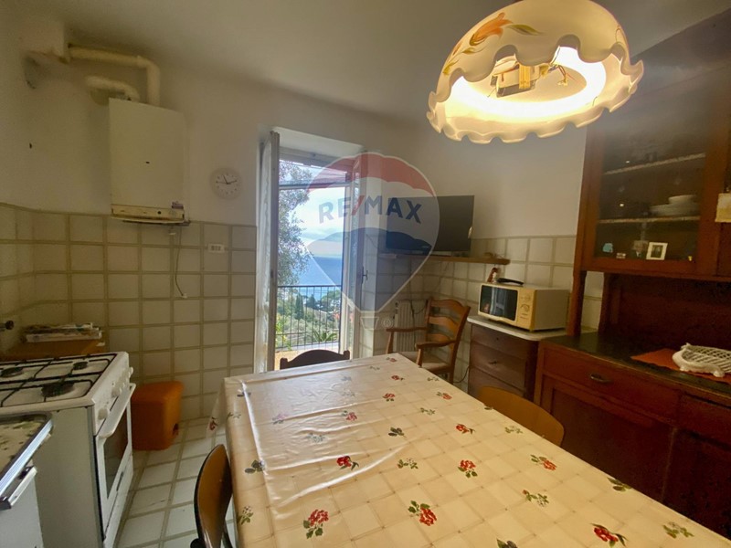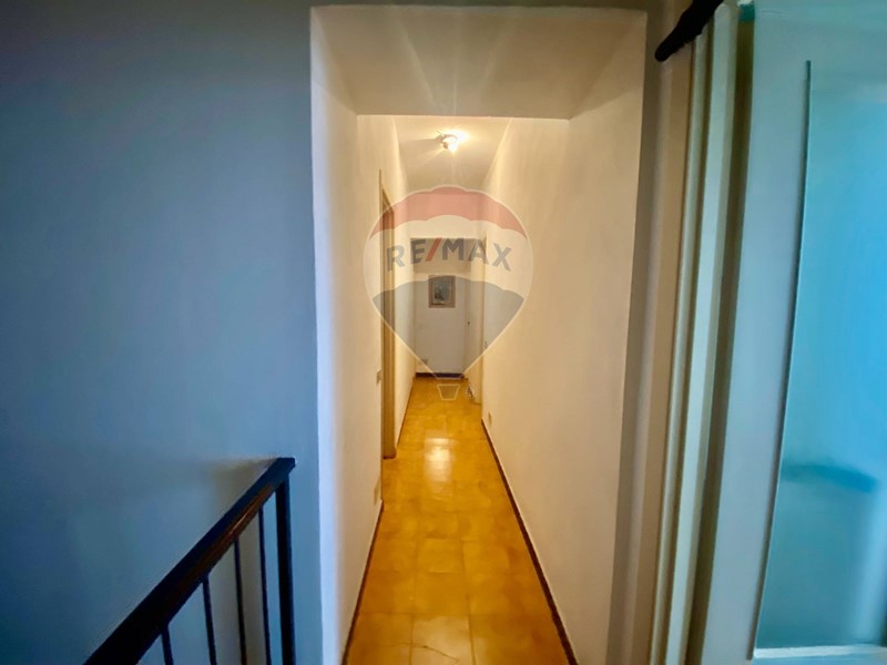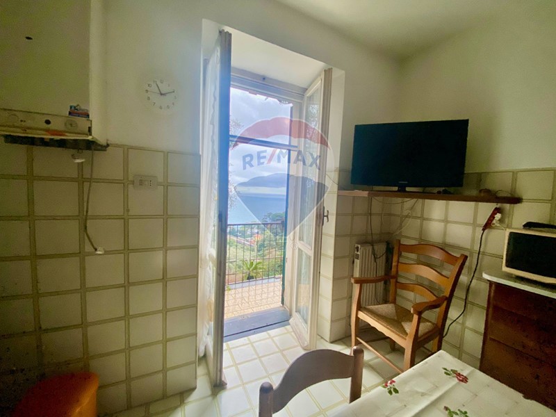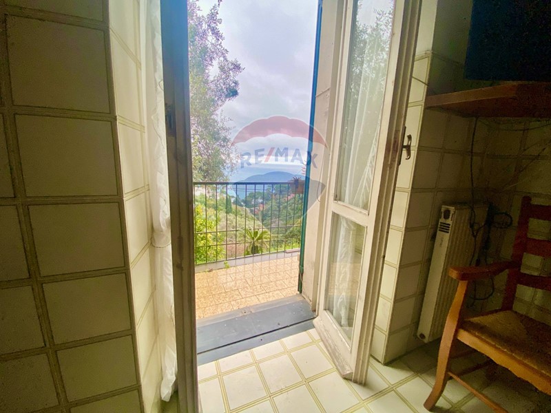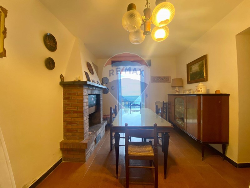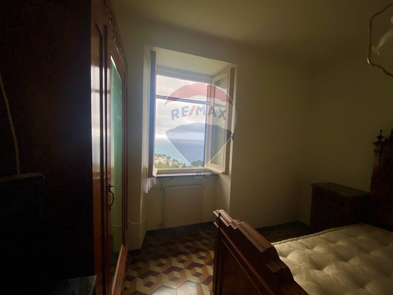 Disposta su due piani da ristrutturare, offre ampi spazi: al piano terra soggiorno con camino, cucina abitabile, bagno di servizio e cantina; al piano superiore tre camere da letto, uno studiolo, una quarta camera, balcone e bagno finestrato, tutti con vista mare.