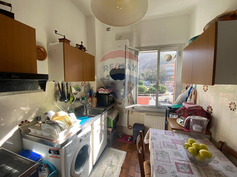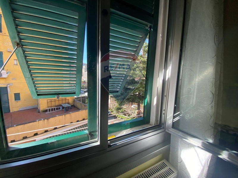 Luminoso appartamento di 63 mq, soleggiato fino al tramonto e con vista aperta sulla Val Bisagno, situato al 4° piano di una palazzina ristrutturata recentemente insieme al completo rifacimento del tetto.