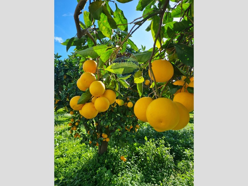 A completare la proprietà, un terreno di 8 ettari che costeggia il complesso, piantumato con agrumi e olivi lungo tutto il perimetro. Un contesto naturale unico, ideale non solo come cornice paesaggistica ma anche come risorsa agricola produttiva.