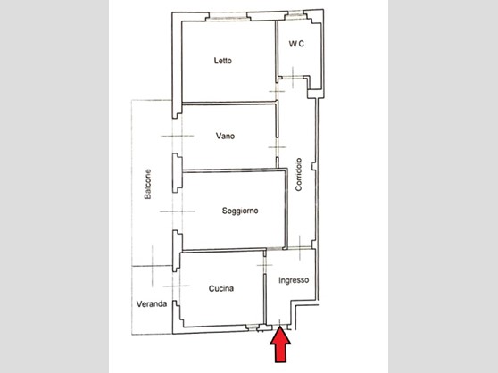 L'appartamento si trova al quarto piano di un edificio dotato di ascensore, ha una superficie interna di circa mq. 85, ed è così suddiviso: