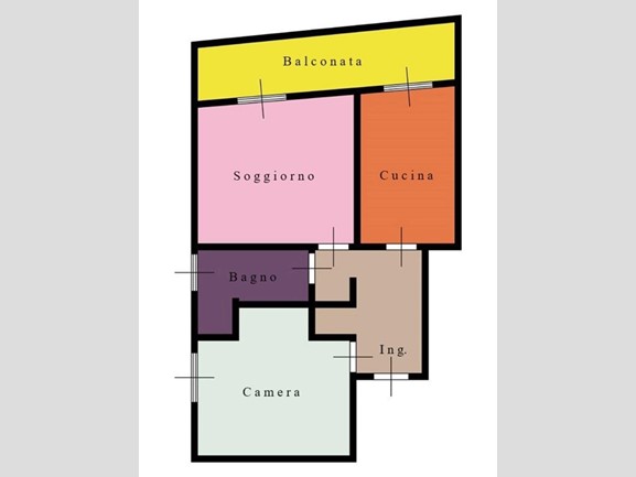 L'appartamento, di 60 mq, è composto da due locali luminosi e accoglienti, ideali per ospitare una coppia o una piccola famiglia. Posto al piano nobile, luminoso si compone di ingresso, soggiorno, camera, cucina, bagno e terrazzino.