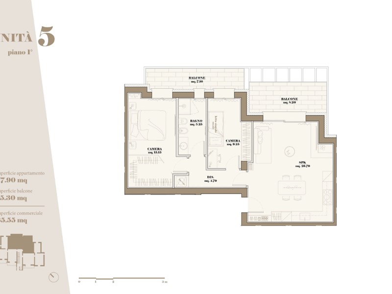 • secondo balcone da 7,10 mq a servizio della zona notte