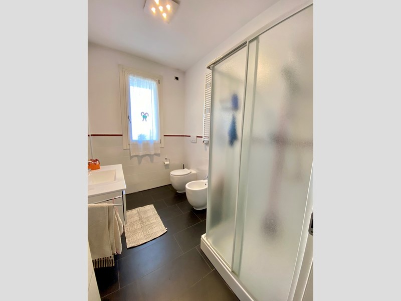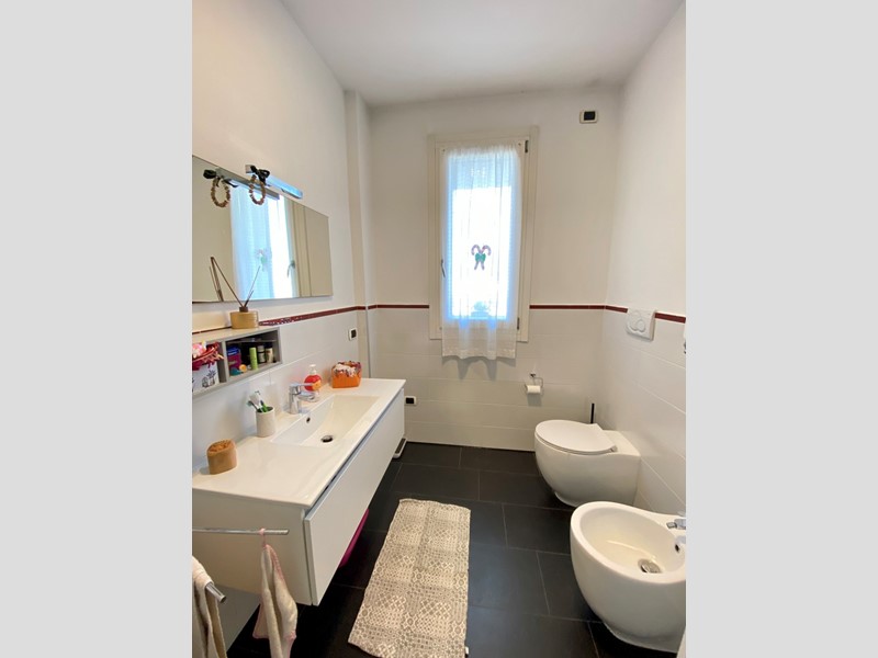 In quartiere di Rovigo, in una posizione tranquilla a due minuti dal Corso del Popolo, proponiamo in vendita questo splendido immobile collocato in un contesto edificato nel 2009. L'abitazione, collocata al piano primo, dispone di ingresso indipendente accessibile da scala esterna privata e internamente si compone da ingresso nel soggiorno, sala da pranzo e cucina separata da porta scorrevole a doppia anta, bagno del reparto giorno con doccia; al piano superiore sono presenti le due camere matrimoniali di cui una con ripostiglio ad uso cabina armadio, bagno con doccia, vasca e spazio per la zona lavanderia. Esternamente è presente il giardino privato da cui si ha accesso anche al garage doppio con basculante motorizzata. L'immobile presenta riscaldamento a pavimento con caldaia a condensazione, aria condizionata con due split in zona giorno e due in reparto notte, portoncino d'ingresso blindato e ingresso pedonale indipendente.