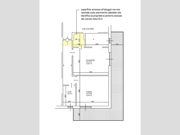 calcolo della superficie commerciale esclude pertanto il ripostiglio (ex vano ascensore) e la piccola porzione di corridoio in prossimità della porta d'ingresso.