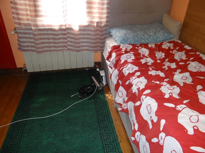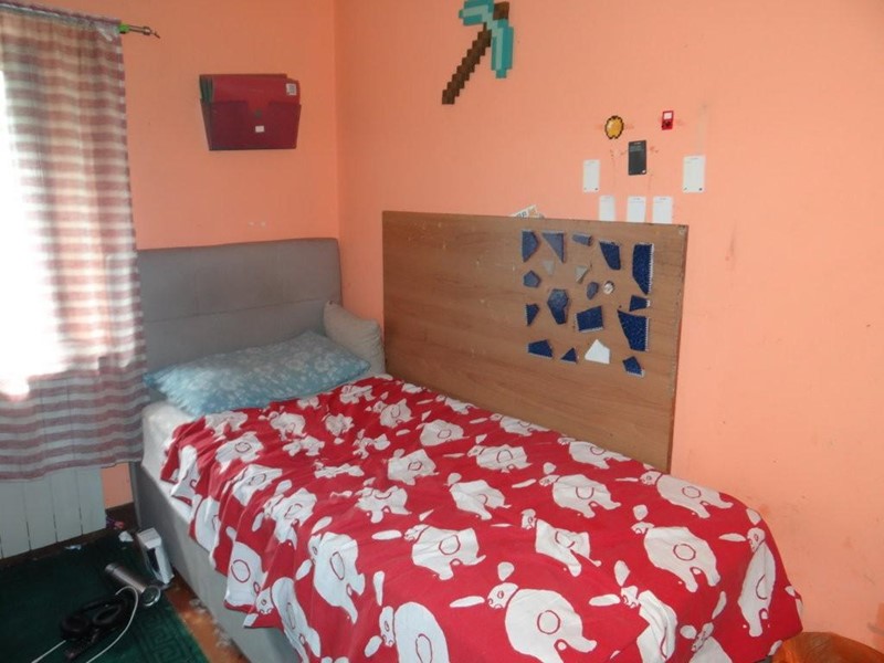 A) Fabbricato elevato a due piani fuori terra e destinato ad abitazione composta da: - piano terra: cucina, disimpegno, bagno, soggiorno, ripostiglio; - piano primo: n. 4 camere da letto, disimpegno, bagno e n. 2 balconi, collegati da scala interna in legno.