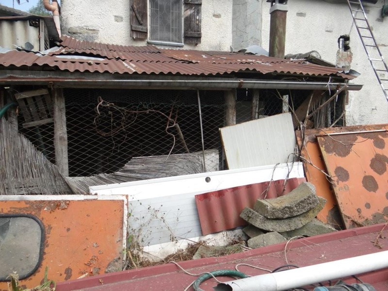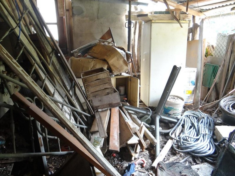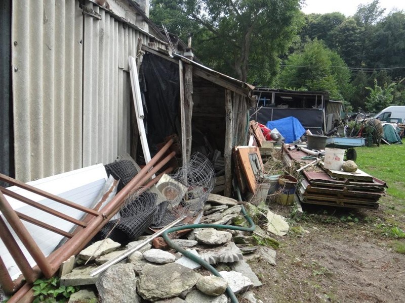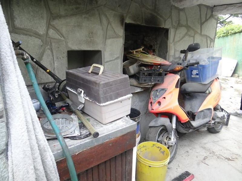 B) Tettoia/deposito alle coerenze: abitazione e cortile pertinenziale con area verde privata.