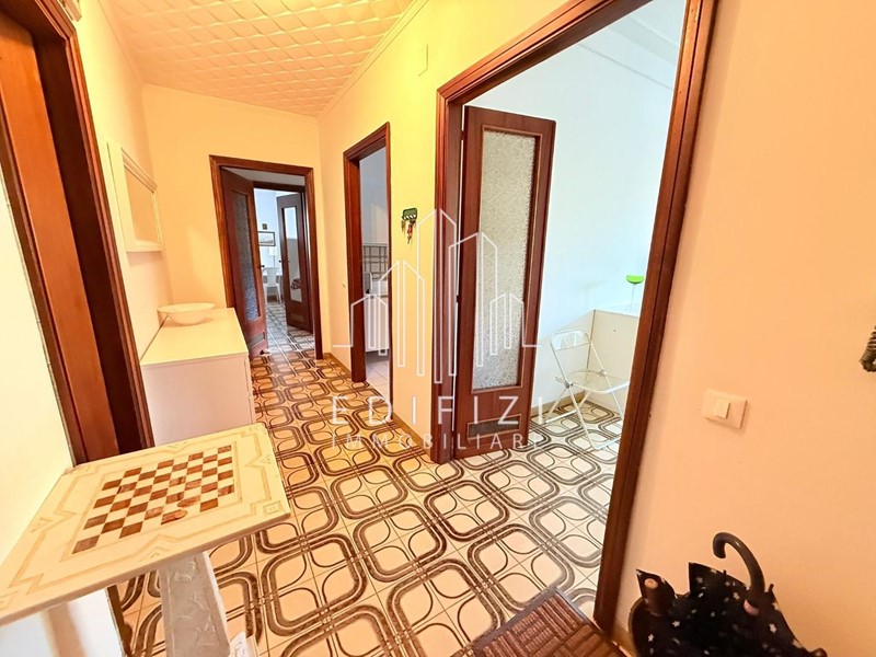 La composizione interna comprende un soggiorno-pranzo, un cucinotto separato, un disimpegno che conduce a un bagno finestrato, a due spaziose camere da letto e a un ripostiglio.