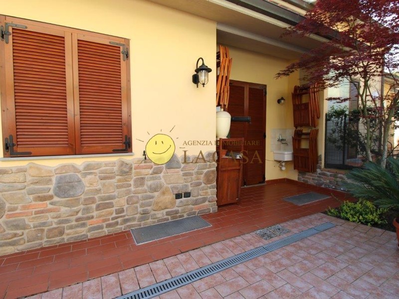 Al piano terra sempre con accesso indipendente, da scala esterna esclusiva è composto da una cucina attualmente adibita a camera, soggiorno con affaccio su loggia, due camere da letto, un servizio e giardino/resede tergale.
