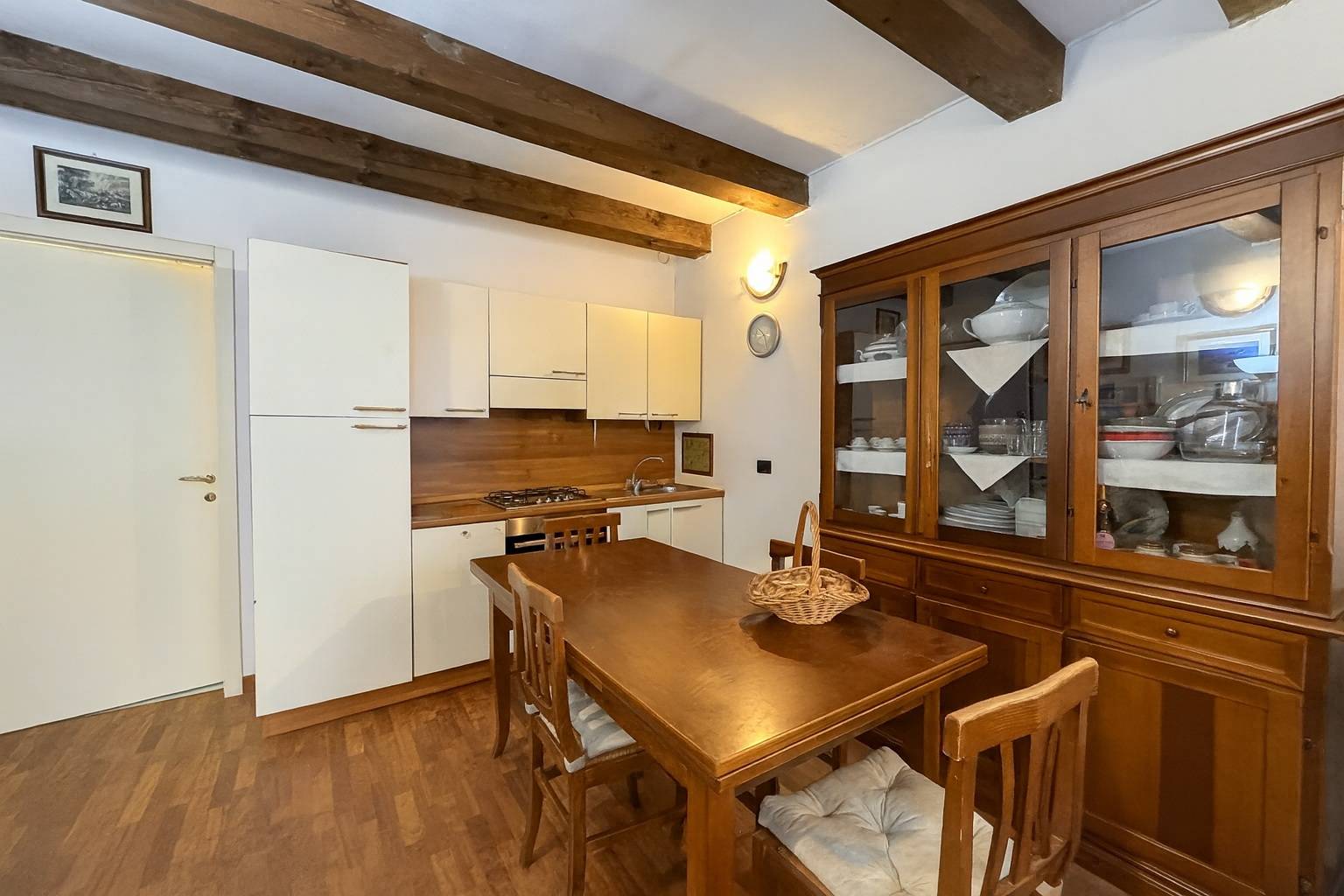 Le ottime rifiniture valorizzano limmobile: travi a vista e pavimentazione in parquet che donano carattere e calore agli ambienti.