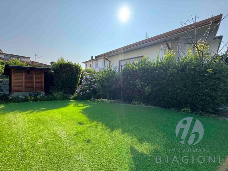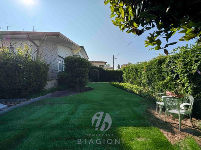 L'immobile è circondato da un giardino privato piantumato di 300 mq, perfetto per momenti di relax o per realizzare una zona living esterna. Posto auto interno di proprietà.