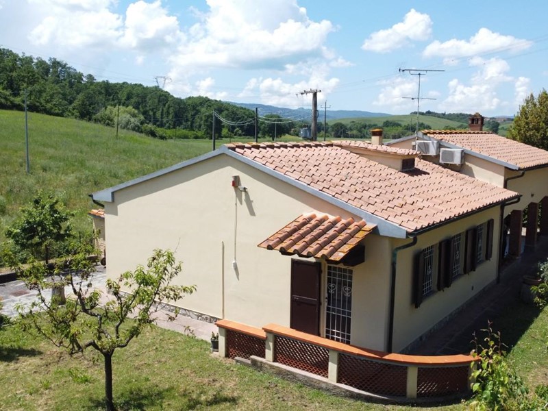 In co-esclusiva !!! Nei pressi di Volterra immersa nella campagna toscana, situata nella zona di Molino D'era nel verde delle colline, vendesi villetta indipendente completamente ristrutturata di 150 mq circa e completamente recintata con cancello automatico di ingresso, circondata da 450 mq di giardino con diversi posti auto, la casa disposta solo al piano terra rappresenta un'ottima soluzione per chi cerca comfort e indipendenza. Da bel loggiato di 20 mq si accede in ampia zona giorno con angolo cottura, disimpegno, due camere matrimoniali, due bagni ed un ulteriore vano pluriuso utilizzabile come terza camera, studio, salotto ecc...Dal loggiato si accede ad un grande e comodo magazzino di 53 mq trasformabile in ulteriore abitazione e nel giardino è presente un altro locale uso magazzino di 8 mq ideale come ricovero attrezzi; il giardino è ben tenuto con piante, alberi da frutto e orto curato. Posizione cardinale strategica, punto ideale per visitare i luoghi più famosi della Toscana come Volterra, San Gimignano, Pisa, Firenze e le splendide coste Tirrenica e della Maremma che distano 50'. A pochissimi km dal Teatro del Silenzio, il famoso anfiteatro creato da Andrea Bocelli. Ape G 358,65 kWh/mq anno. Rif. 1439