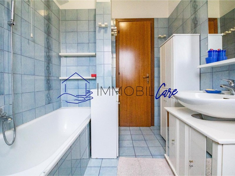 Il disimpegno notte conduce a una spaziosa camera matrimoniale, a una camera media e a un bagno principale, anch’esso finestrato e completo di vasca.
