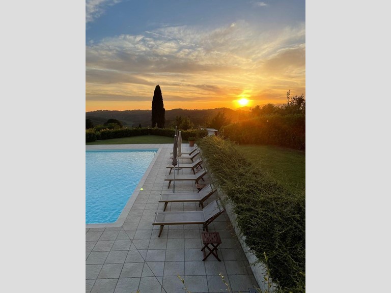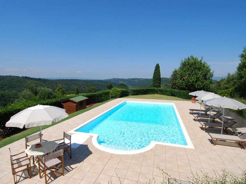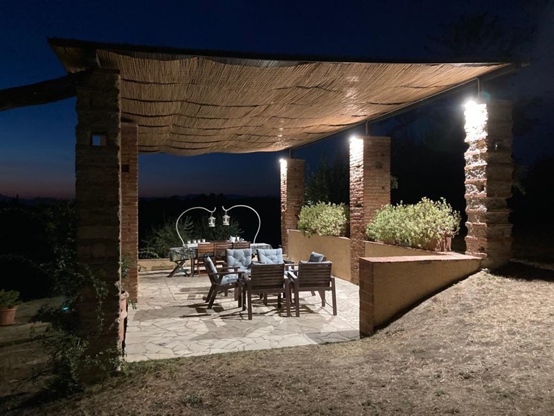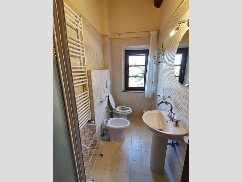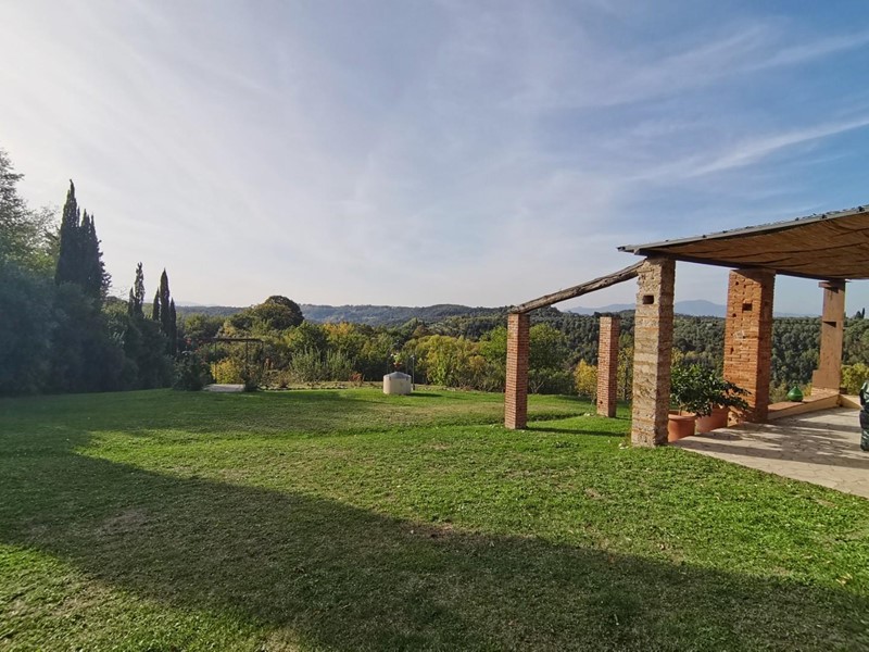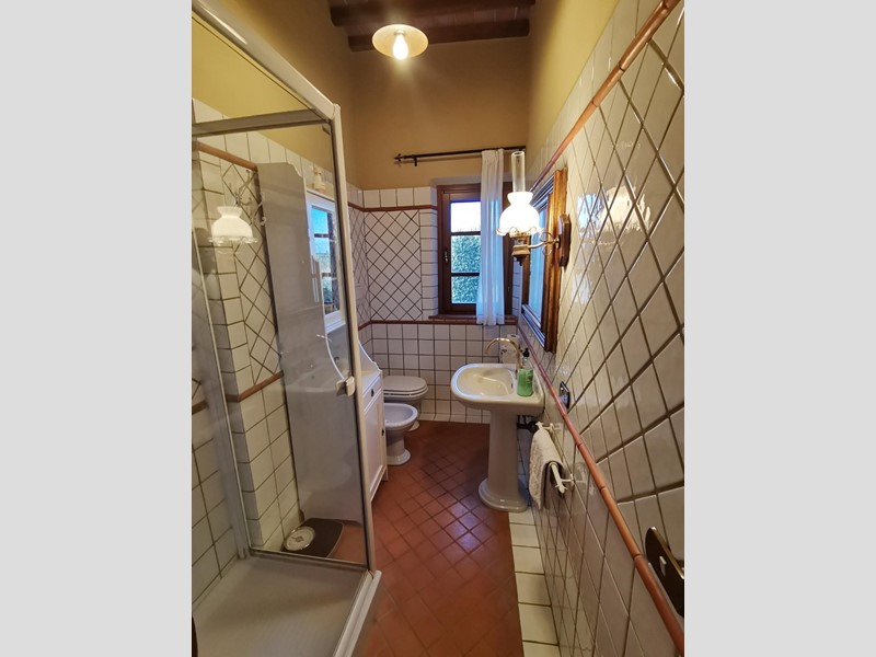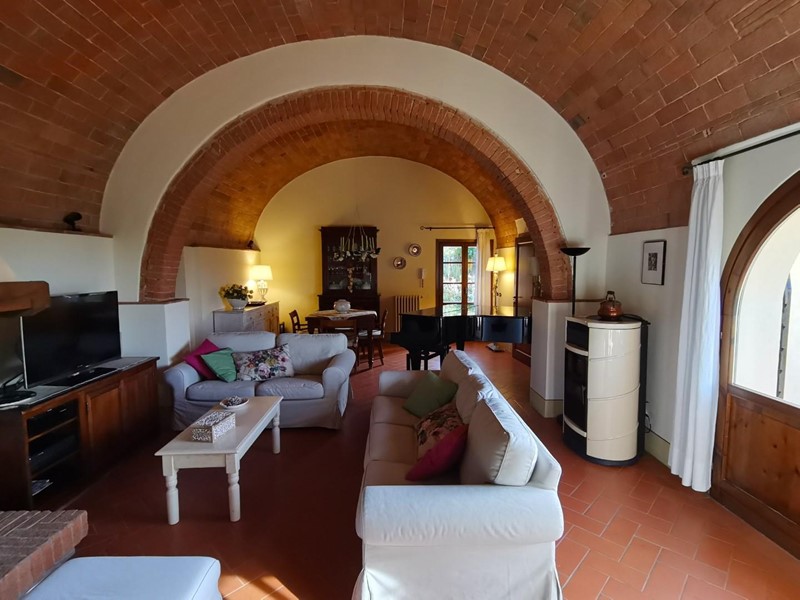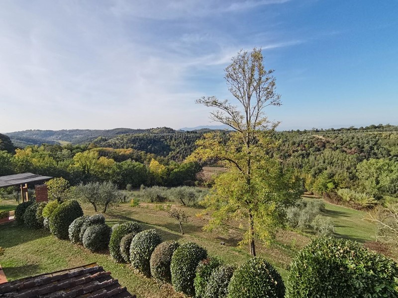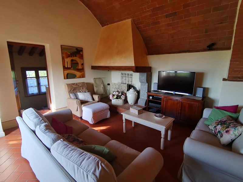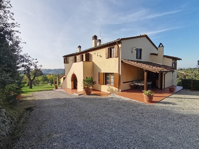 In bella posizione collinare riservata e panoramica colonica su due livelli finemente ristrutturata nel 2007 in stile tipico toscano con solai in travi, travicelli e mezzane e pavimenti in cotto. Il terreno della proprietà è di circa 5 ettari con circa 180 piante di ulivo e frutti ed è completamente recintato. La casa colonica è composta al piano terra da ingresso tramite loggia coperta, ampia sala di mq. 41 con camino ed accesso alla terrazza, cucina con camino, due camere matrimoniali, bagno, ripostiglio, lavanderia e locale tecnico. Il primo piano accessibile sia da scala esterna che da collegamento interno è composto da soggiorno-cucina con camino, quattro camere, tre bagni e terrazzino. Sulla collinetta adiacente la casa, in posizione panoramica, è stata realizzata nel 2003 una piscina di mt. 12,00 x 6,00 con scala romana. Anche la collina della piscina è totalmente recintata. il resede esterno è in parte adibito a parcheggio con colonnina di ricarica elettrica. Completano la struttura un barbecue, una zona esterna coperta attrezzata con cucina per pranzi all'aperto (lavello piano cottura mini frigo), un forno originale in muratura in perfetto stato ed un ex fienile con bella tettoia. Attualmente la struttura è abitata al piano terra dai proprietari mentre il piano primo viene affittato per turismo stagionale. Ottima proprietà per agriturismo, strutture turistico-ricettive o soluzione multifamiliare. L'immobile è in ottimo stato di manutenzione con belle rifiniture.