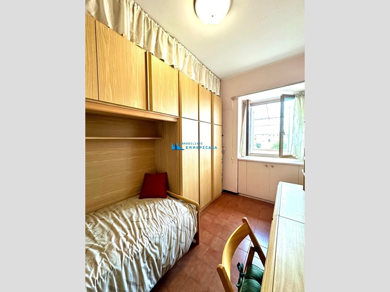 Appartamento nel centro della Città di Massa, vicino a tutti i servizi (raggiungibili a piedi) ma in un contesto particolarmente silenzioso, con una bella vista aperta. Si trova al secondo e ultimo piano di piccolo condominio di sole 6 unità immobiliari con piacevole giardino comune (Non e’ presente ascensore). Si compone di ingresso, cucina abitabile, soggiorno con camino, due camere doppie, una camera singola e due bagni. Balcone perimetrale. Ampia cantina e parcheggio coperto nel seminterrato, collegato dall’interno all’ingresso condominiale. Venduto con arredamento compreso nel prezzo (se interessati).