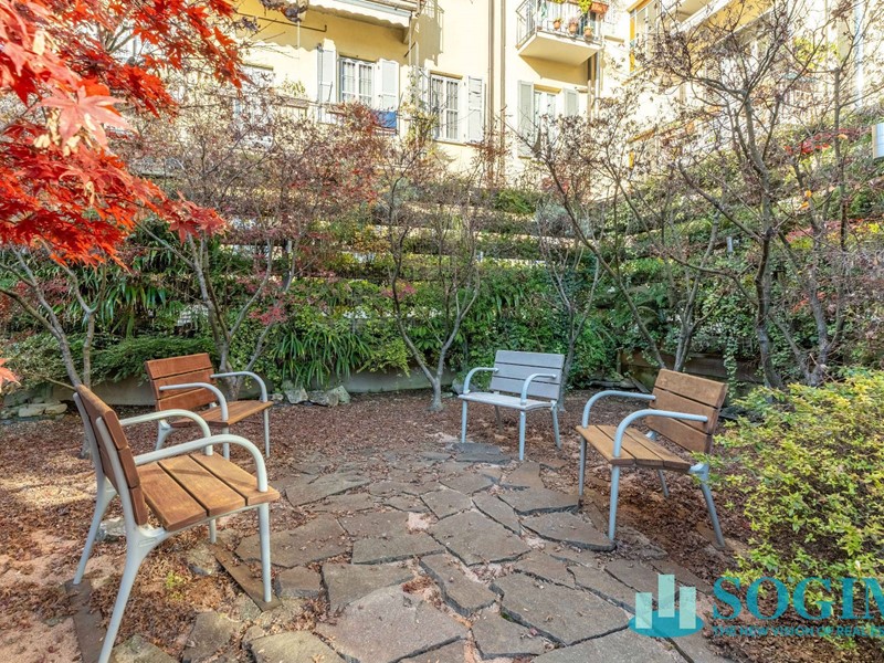 Le ampie vetrate del soggiorno garantiscono luminosità e ariosità, offrendo un piacevole affaccio sui giardini sottostanti, in un contesto silenzioso e rilassante.