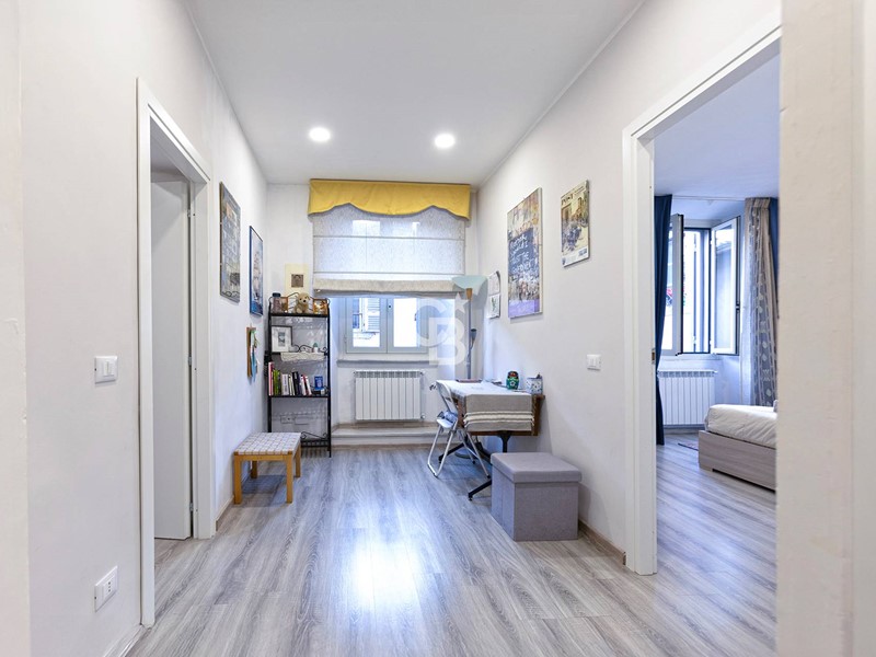 Tuttavia, per chi desidera ottimizzare la resa, ad esempio affittando a studenti, è possibile trasformare lattuale soggiorno in seconda camera da letto e ricavare la zona divano/TV nel funzionale disimpegno.