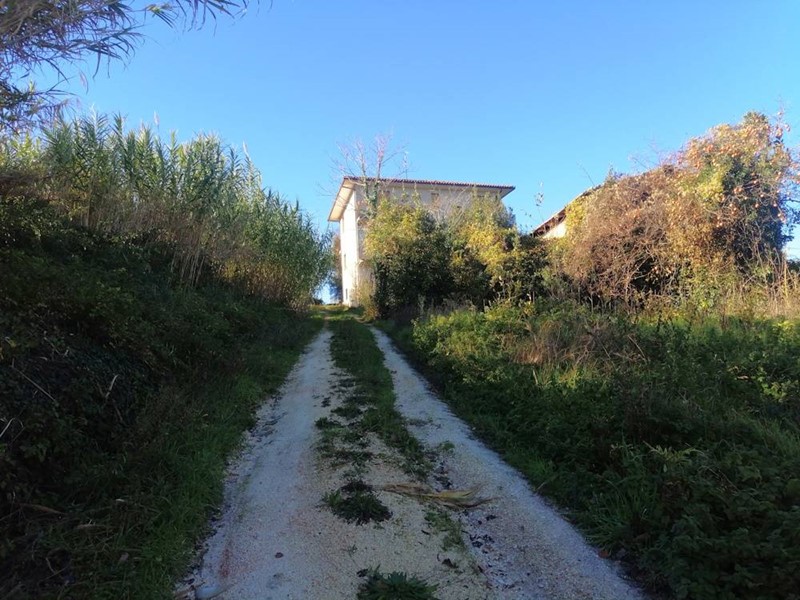 In un crinale , facile accesso e vista stupenda , casa inagibile ammessa al finanziamento post sisma , nella corte grande fienile in pietra e legno oltre a stallette per animali . Il terreno di circa 28.000 mq in parte seminativo in parte uliveto con 30 piante in piena di produzione . Possibilita' di recuperare la parte in pietra della casa