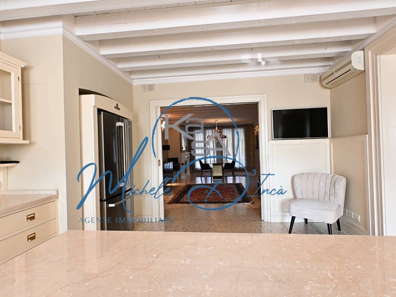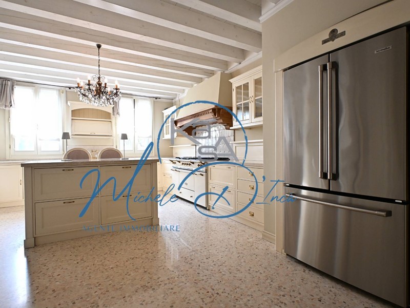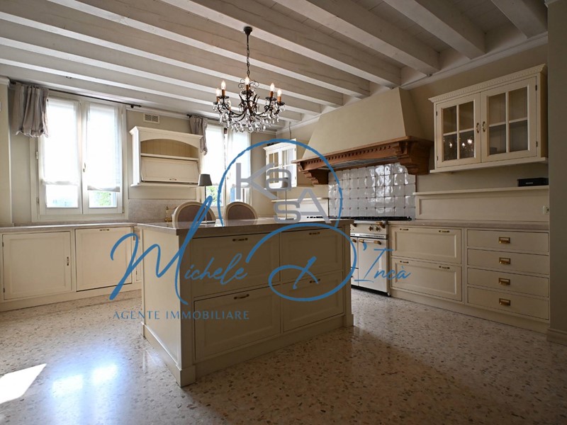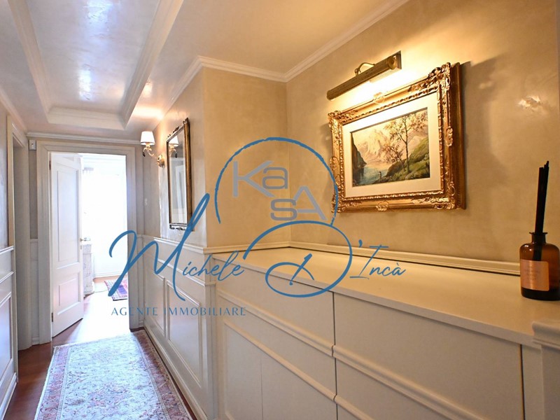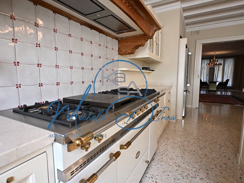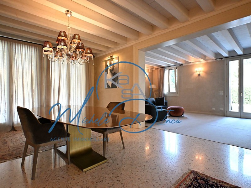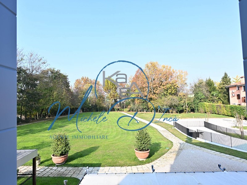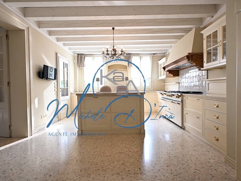 La distribuzione dei locali, dove la pavimentazione in terrazzo veneziano è protagonista, garantisce un comfort assoluto: l'importante e scenografico ingresso ci conduce alla zona giorno di ampie dimensioni dotato di grande vetrata con vista sul parco che dona luce ai saloni. La splendida cucina a vista, elegantissima e funzionale, con un'isola centrale e la zona pranzo adiacente, è ideale per cene importanti, ma anche per la quotidianità.