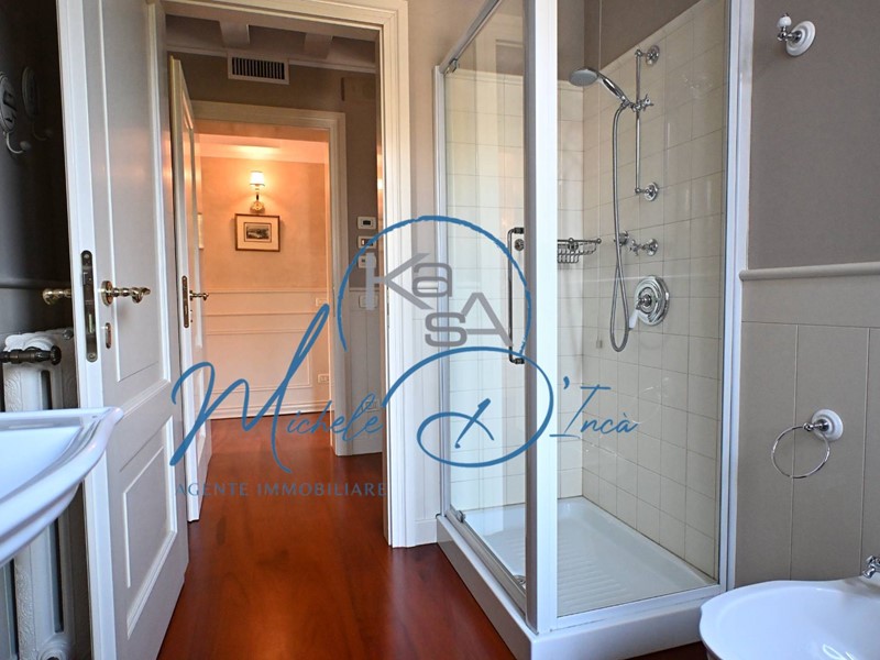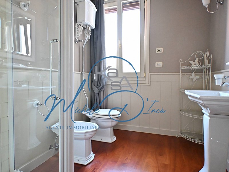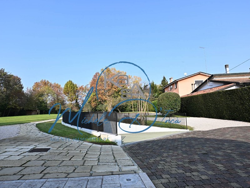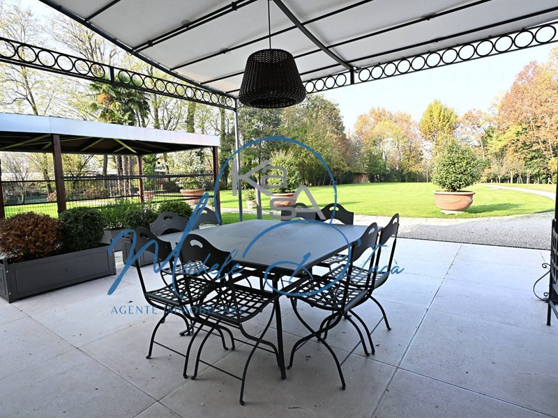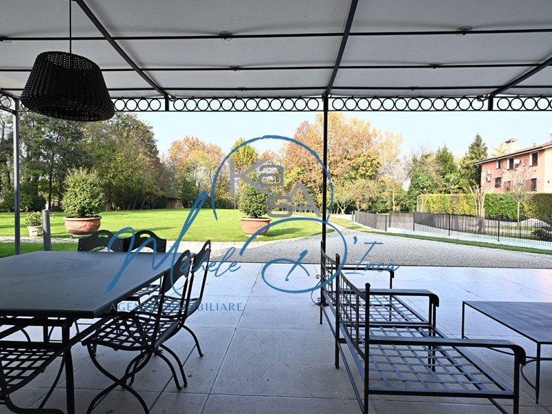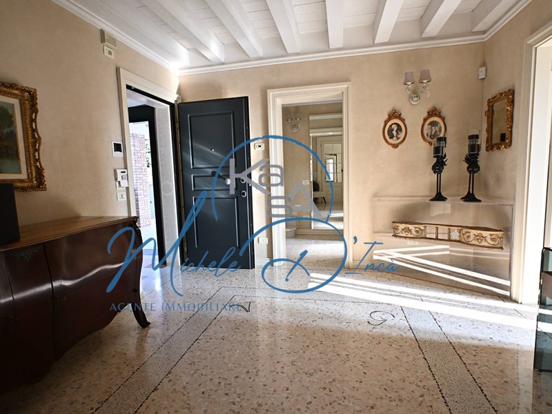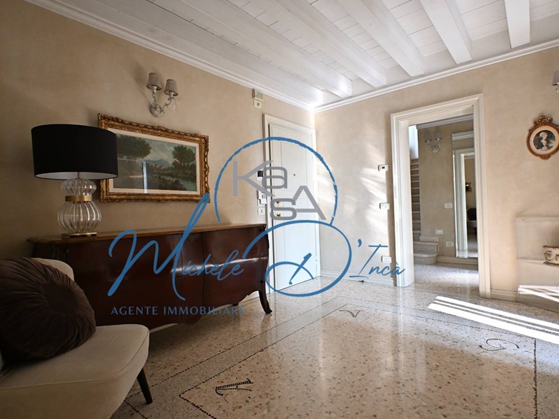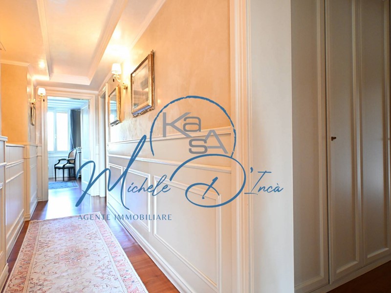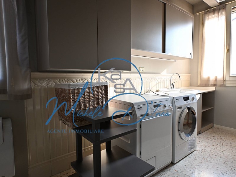 La distribuzione dei locali, dove la pavimentazione in terrazzo veneziano è protagonista, garantisce un comfort assoluto: l'importante e scenografico ingresso ci conduce alla zona giorno di ampie dimensioni dotato di grande vetrata con vista sul parco che dona luce ai saloni. La splendida cucina a vista, elegantissima e funzionale, con un'isola centrale e la zona pranzo adiacente, è ideale per cene importanti, ma anche per la quotidianità.