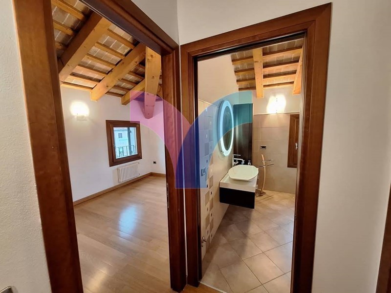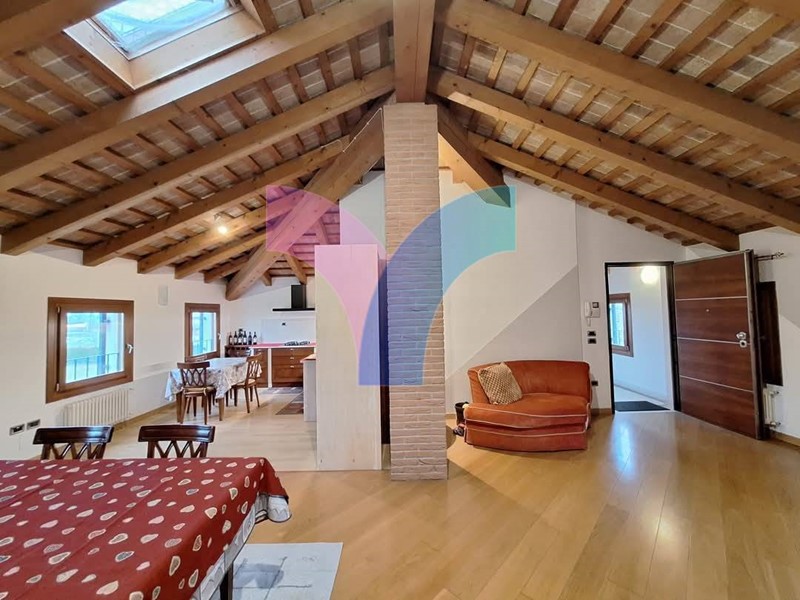 Venezia-Mestre Località ZELARINO Vicinanze Centro Commerciale Polo, nostra esclusiva , Vendesi bellissimo attico inserito in una casa colonica del'800 primi del '900 ristrutturata nel 2007 composta da 4 unità abitative di cui due con ingressi indipendenti. l'immobile tenuto impeccabilmente, è completamente mansardato e travato a vista, al secondo ed ultimo piano, composto da ampio salone, cucina a vista con possibilità di separarli, due camere, un bagno con doccia. Finiture di pregio. Completano la consistenza un secondo bagno situato al piano primo finestrato e utilizzabile come lavanderia, due posti auto e ampio scoperto privato di 1.500 mq con all'interno una casetta in muratura ad uso di magazzino/deposito attrezzi. L'immobile è finemente arredato con mobilio di elevata qualità .