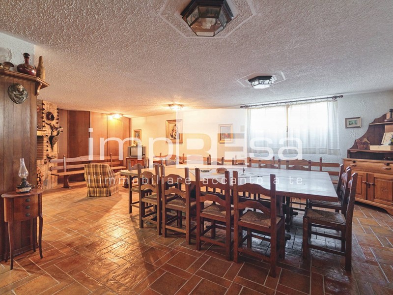 Scendendo qualche gradino c'è una taverna spettacolare di 90 mq con caminetto, una cantina e zona bar.