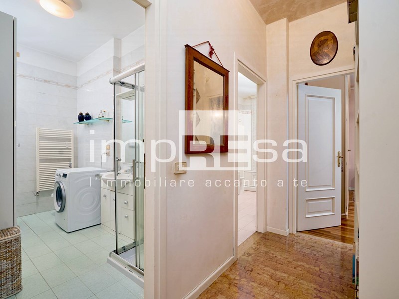 Ingresso nell' ampia zona giorno con la cucina a vista, eventualmente separabile; disimpegno zona notte, camera matrimoniale, camera doppia e doppi servizi.