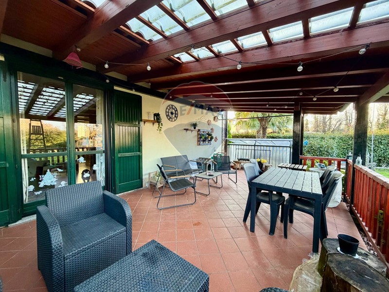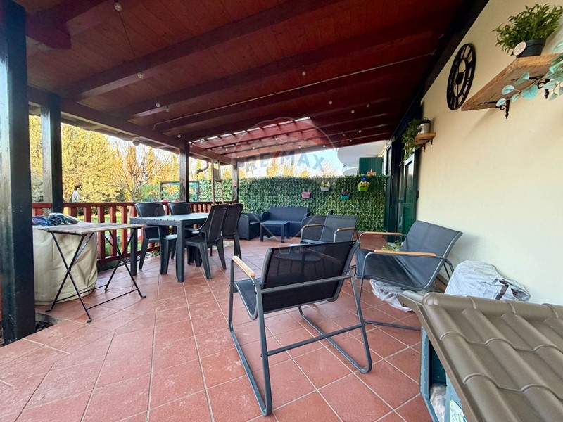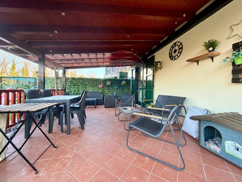 Larea esterna di ampie dimensioni è suddivisa tra una parte piastrellata allingresso, un affascinate bersò, un grande giardino e da un caratteristico porticato da godersi con amici e parenti.