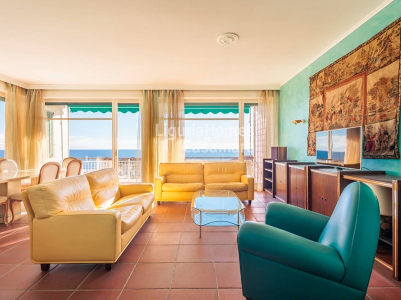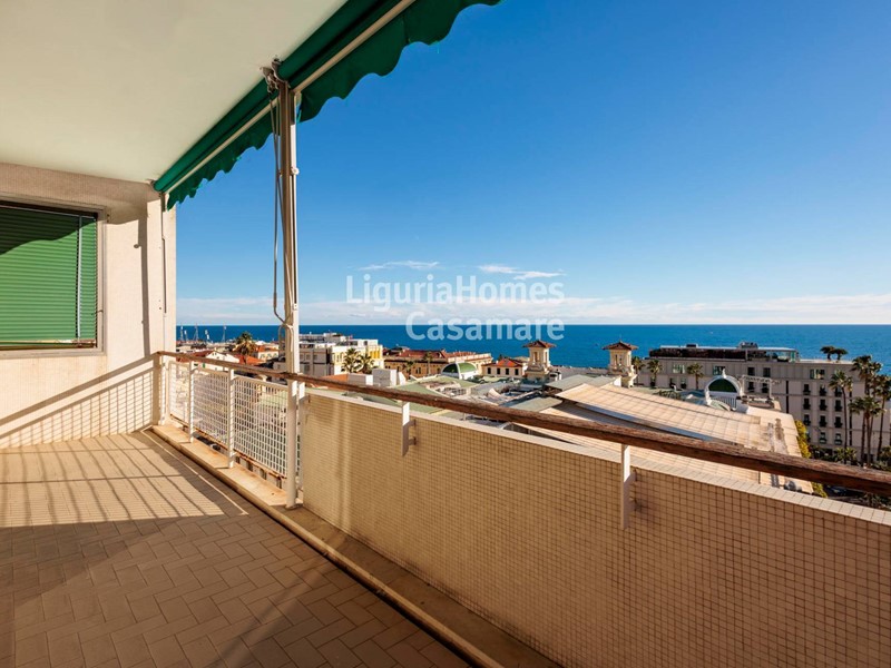 Elegante e ampio appartamento sotto attico in vendita a Sanremo, con terrazzo vista mare e garage privato, a pochi passi dal Casinò.