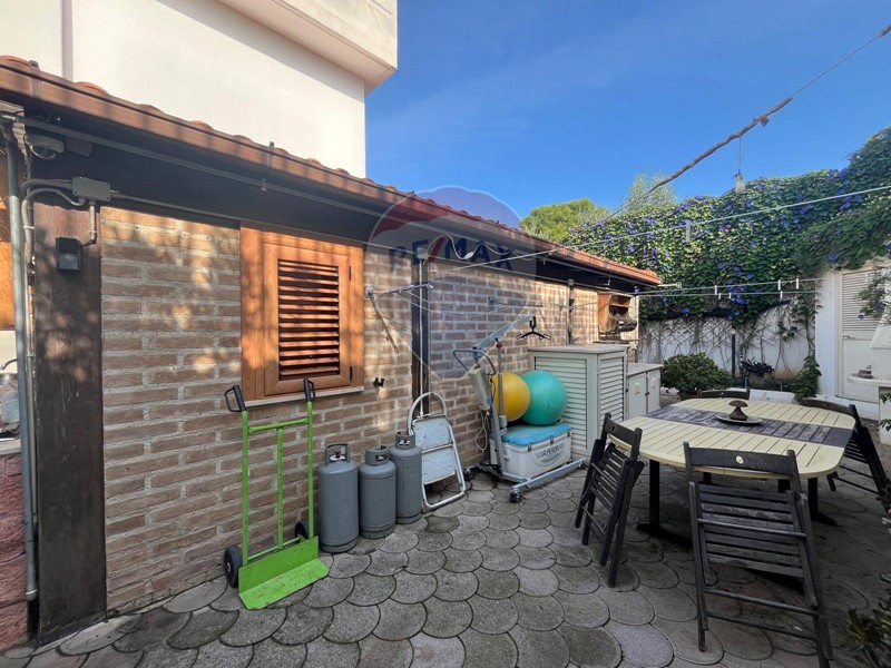 A completare il tutto, il giardino privato di mq. 130 dotato di cucina esterna, lavello e docce esterna, circonda l'immobile su due lati, offrendo uno spazio ideale