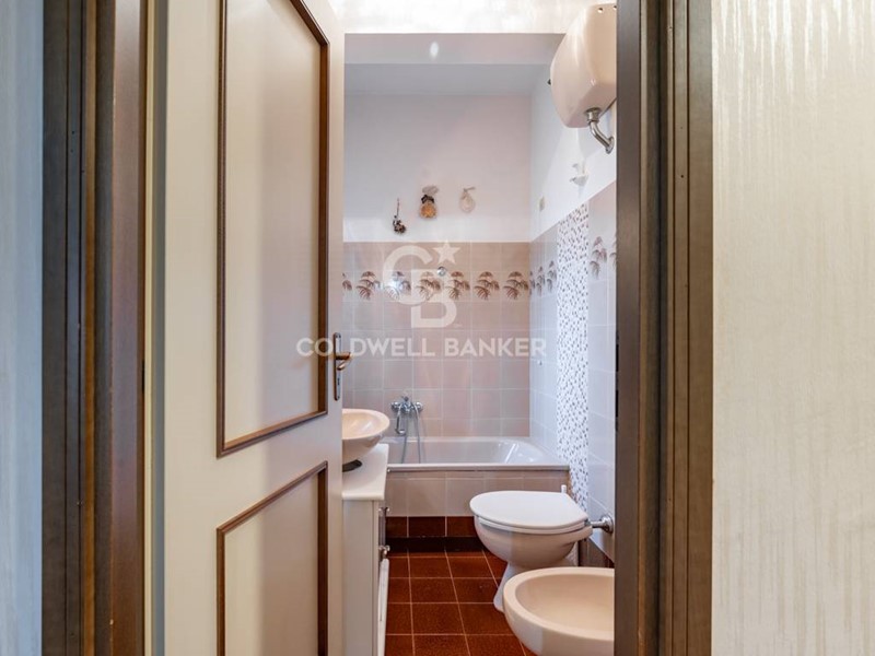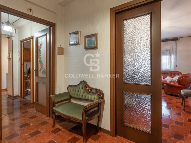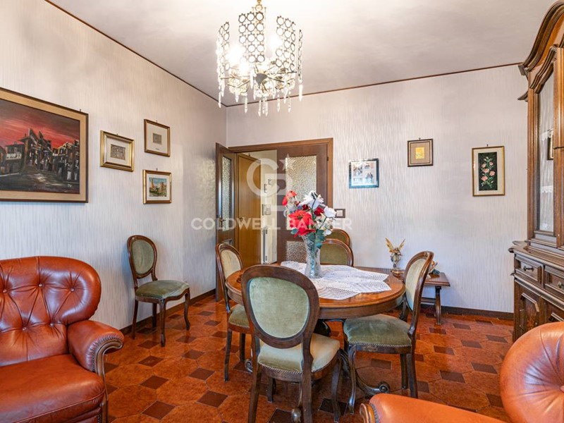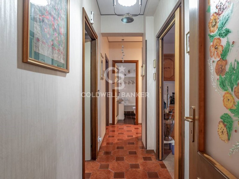 Il trilocale, di circa 115 mq. catastali, è al primo piano rialzato di una piccola palazzina di tre piani, ed è composto da: