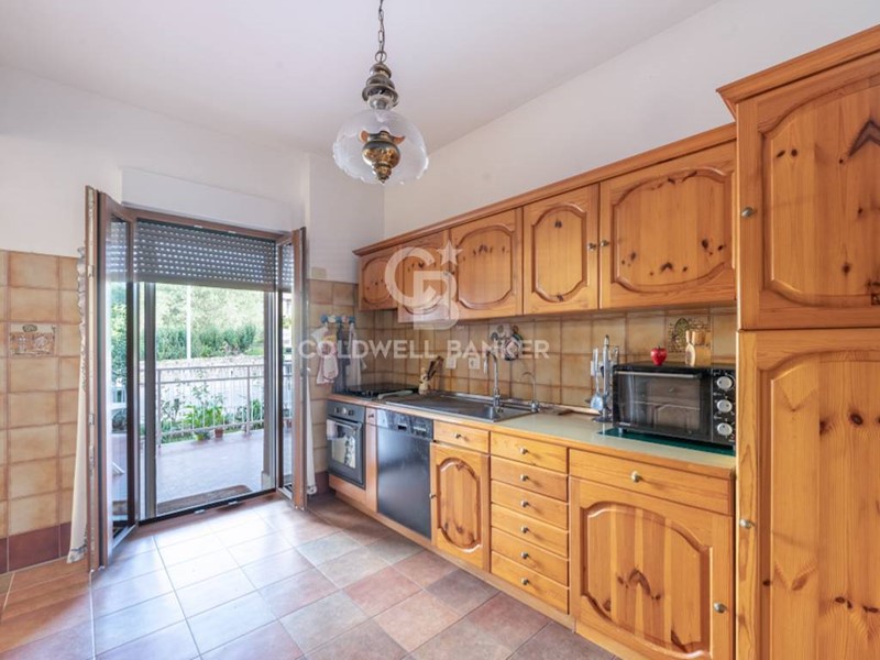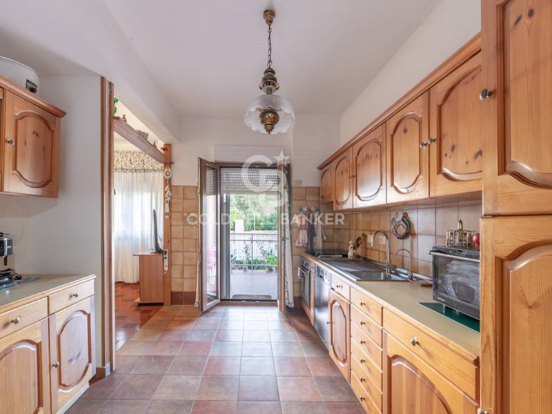 cucina abitabile con accesso diretto al giardino e comoda sala da pranzo